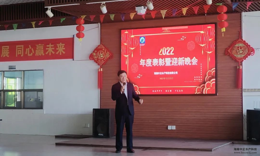 典禮在董事長雷夏雨精彩而溫情的致辭中拉開了帷幕! “值此辭舊迎新之際,我謹代表公司各位領導,向全體員工致以新年的問候和良好的祝愿,向全體員工家屬致以衷心的感謝和新年的祝福!對于2021年發生的一切,無論是困難還是成績,我們都心懷感恩,感恩困難讓我們成長,感恩每個員工的辛勤工作和無私奉獻,希望我們在座的所有員工一起努力把中正打造成現代化的高科技水產企業。”